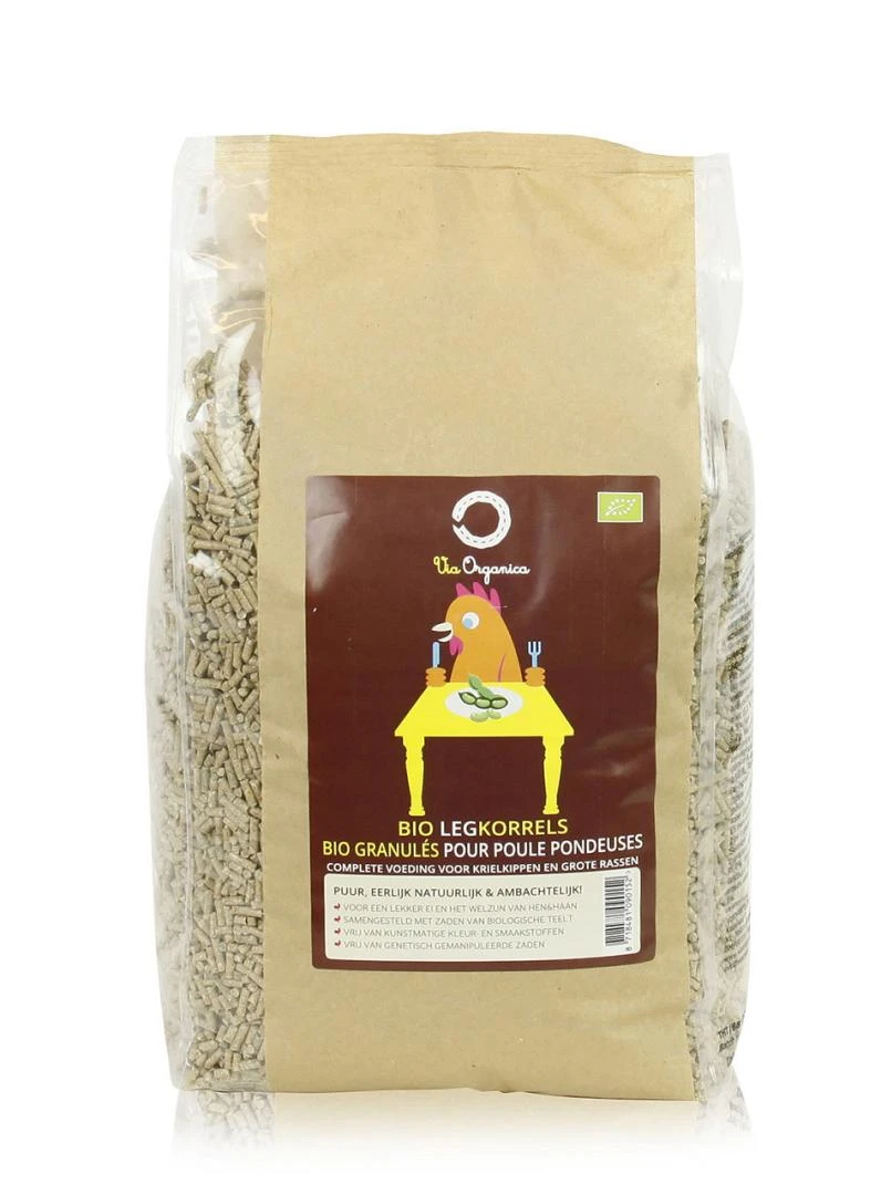 Via Organica Bio Legkorrel is een volledige voeding voor jouw kippen, samengesteld uit een rijke variatie bio grondstoffen van de hoogste kwaliteit.