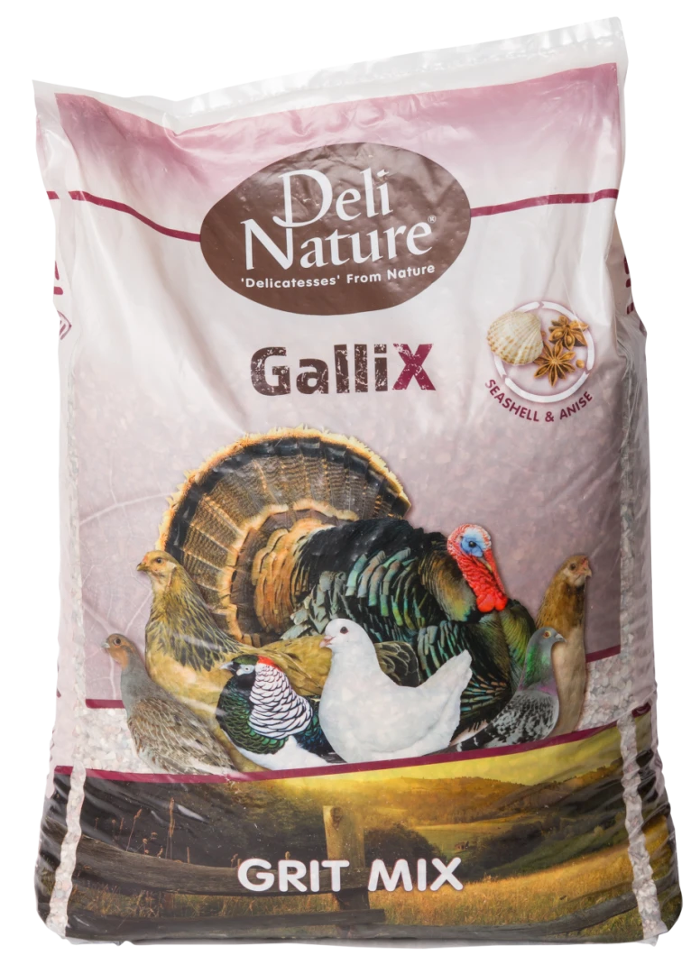 Deli Nature GalliX grit mix is een goede bron van calcium. Dit zorgt voor een goede vorming van het skelet en voor sterke en egale eischalen.