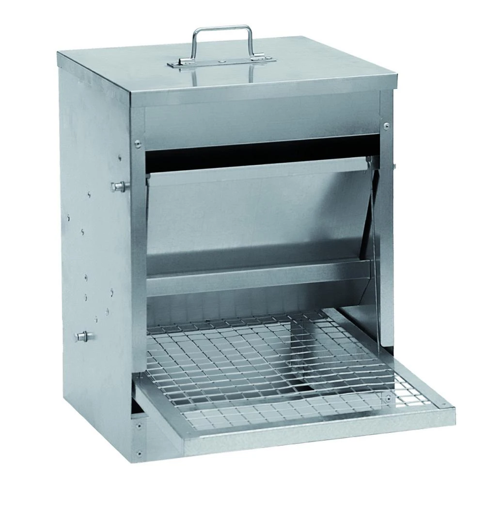 De Gaun pluimvee voerstation is een gegalvaniseerde voerstation voor kippen. Door middel van het rooster kan ongedierte niet bij het voer komen maar kippen juist wel.