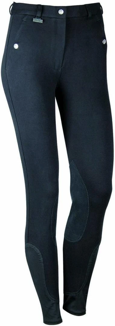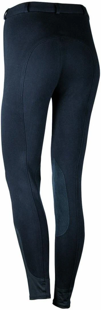 De broek heeft elastische kunstlederen kniestukken en een lycra inzet onderaan de broekspijp voor extra grip en comfort.
