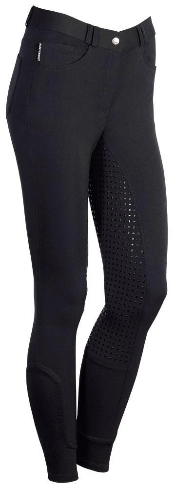 De Harry’s Horse kinderrijbroek Redwood met rondgenaaid zitvlak voorzien van siliconen print voor extra grip in het zadel, twee kontzakken, twee steekzakken en een schuifknoopsluiting en rits, lycra flex legs.
