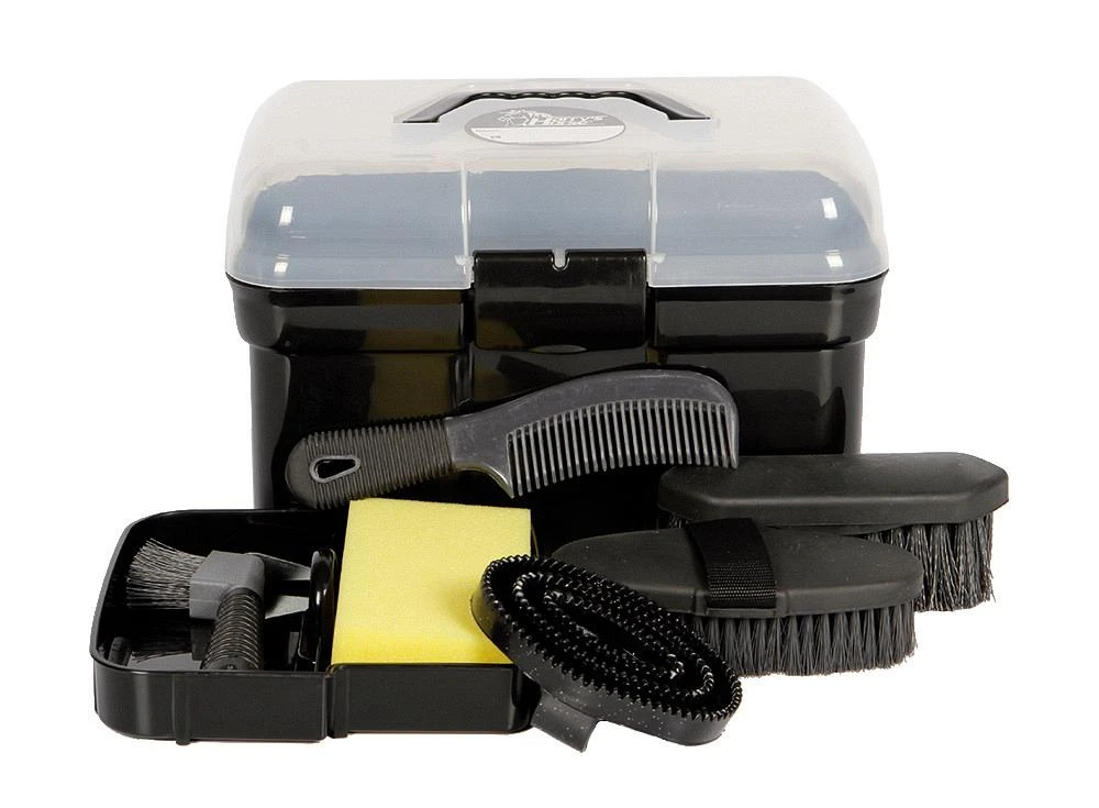 Inhoud: hoevenkrabber met borstel, glans borstel, harde borstel, rosborstel met glitters, spons en manenkam