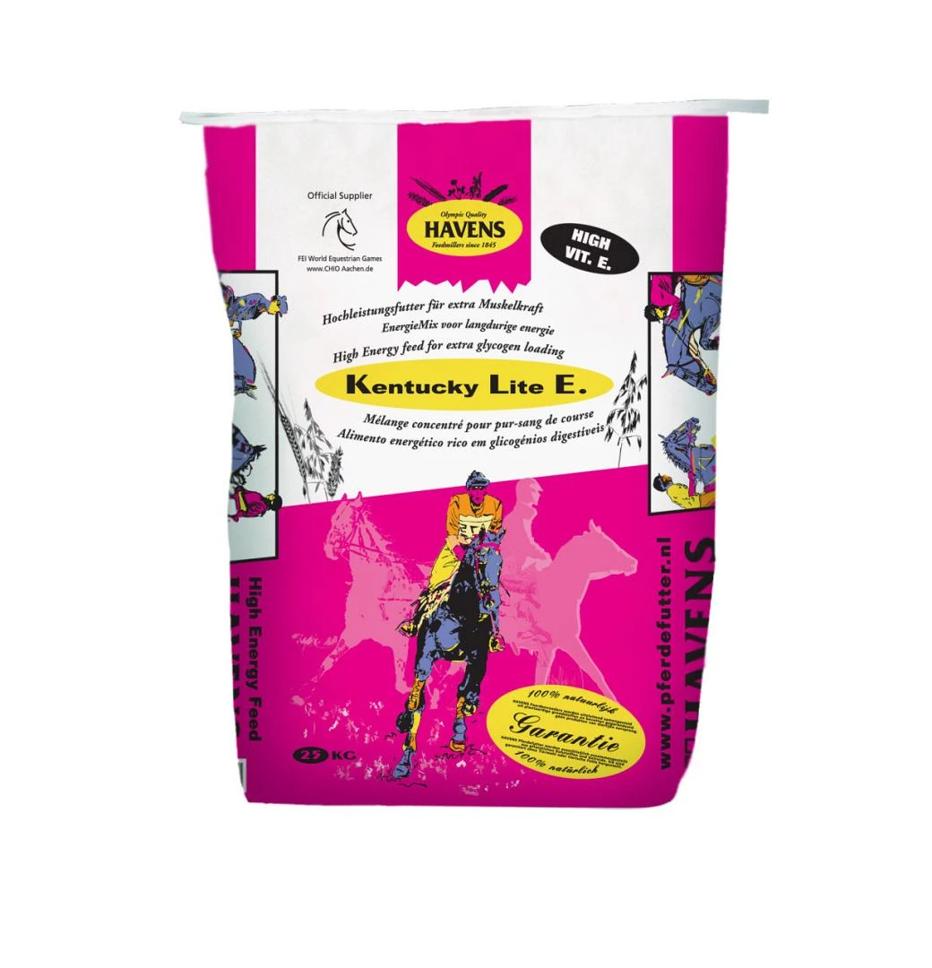 Kentucky Lite E is een exclusieve mix van zwarte en blanke haver, gerst, gebroken maïs, lijnzaadolie, tarwe en een speciale high-perfomance-vitaminekorrel. Door het hoge energiegehalte is het product ideaal voor paarden en pony’s in zware training en sport.