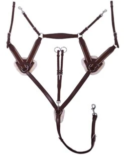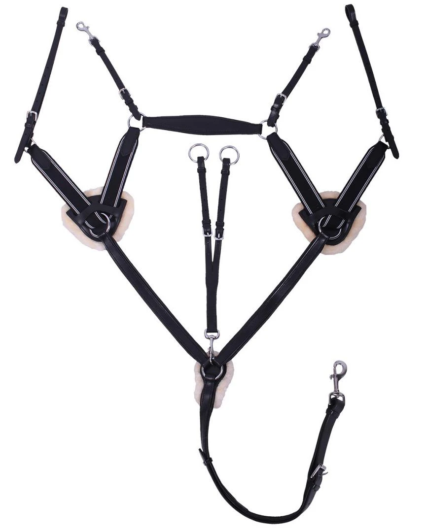 Het QHP borsttuig Ontario is een vijfpunts borsttuig met afneembare martingaalvork en een voering van imitatiebont op de schouders en borst.
