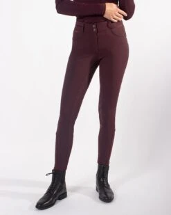 QHP Damesrijbroek Diamond Anti-slip Zitvlak Wine Red