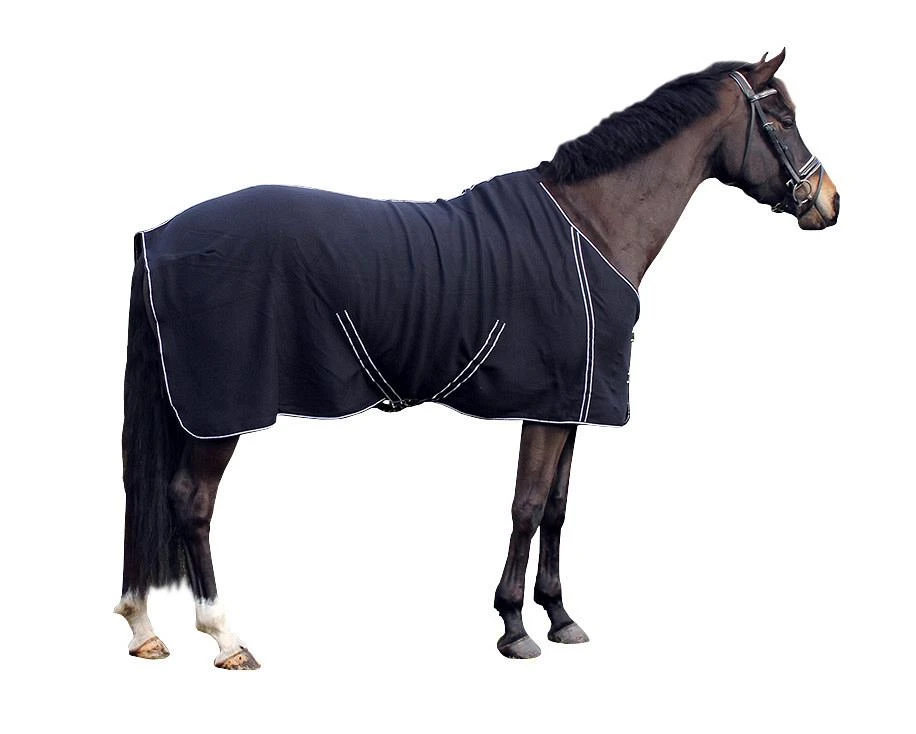 Bovendien zorgt de decoratieve witte lijn voor een luxe uitstraling en het zachte stukje fleece op de schoft zorgt dat de deken niet schuurt.
