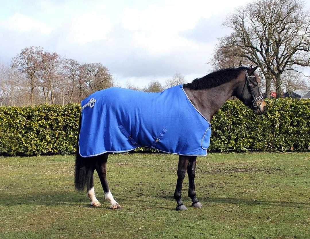 Een zweetdeken zorgt ervoor dat je paard na de training niet te snel afkoelt. De fleece neemt snel vocht op en geleidt dit van het paard af naar buiten.