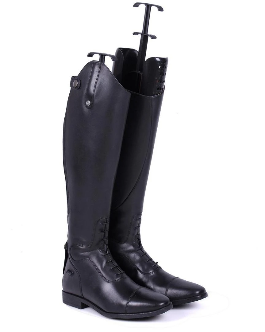 Houd je laarzen mooi in vorm door ze te bewaren met deze QHP laarzenspanners. Hierdoor voorkom je kreukels en vouwen in het leer, en gaan de rits en de laars langer mee.