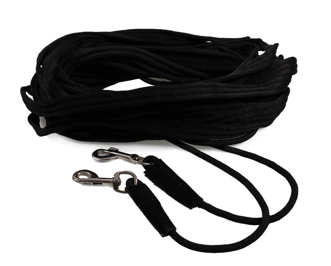 Dubbele longeerlijn van 16 mtr lang. Het voordeel van de dubbele longe is dat je ook contact kunt maken met de buitenkant van het paard. Hierdoor kun je directer inwerken op het paard. Daarnaast kun je de buitenlijn achter het paard langs laten lopen waardoor de achterhand wordt geactiveerd. De longeerlijn zit verpakt in een handige tas om de lijn in op te bergen en mee te nemen.
