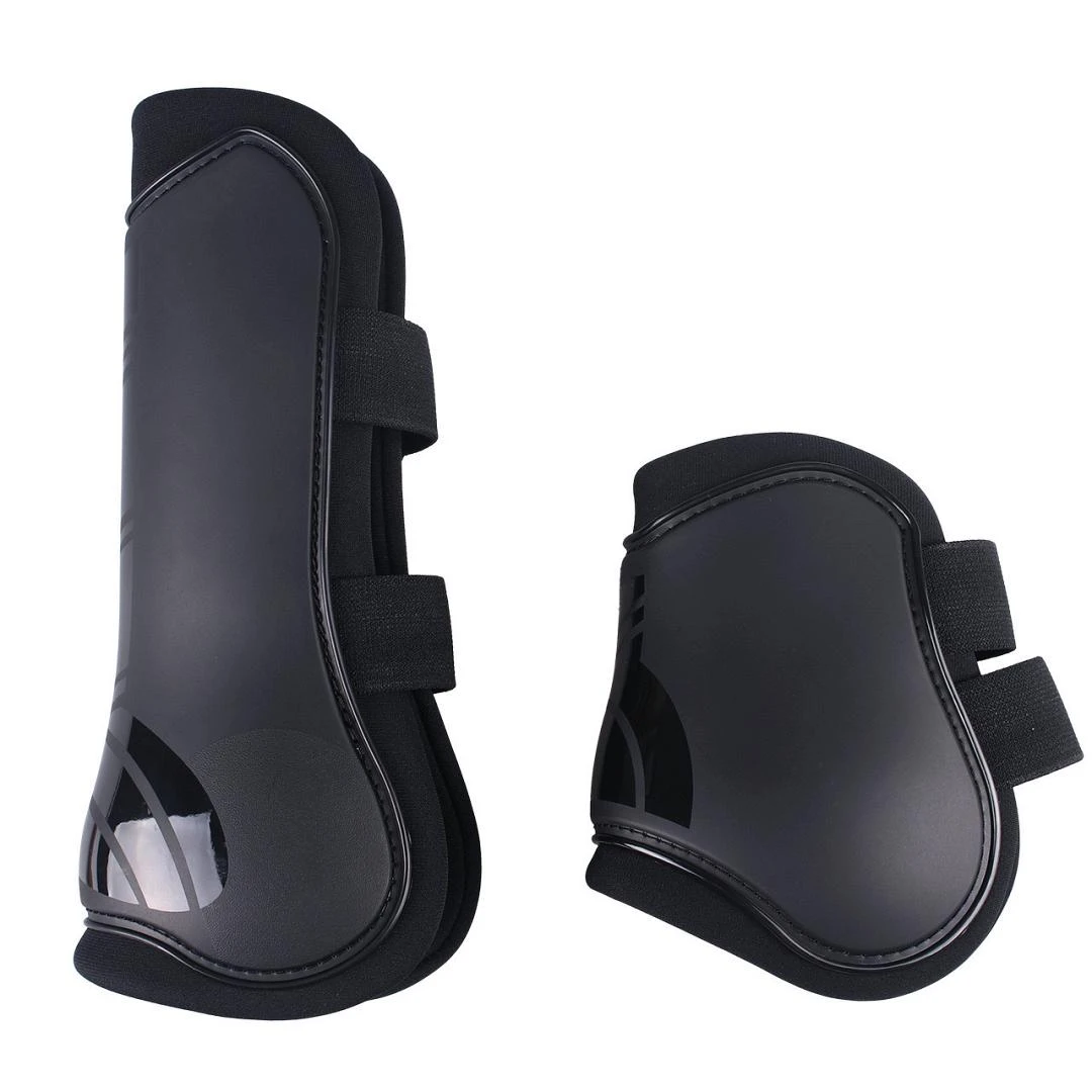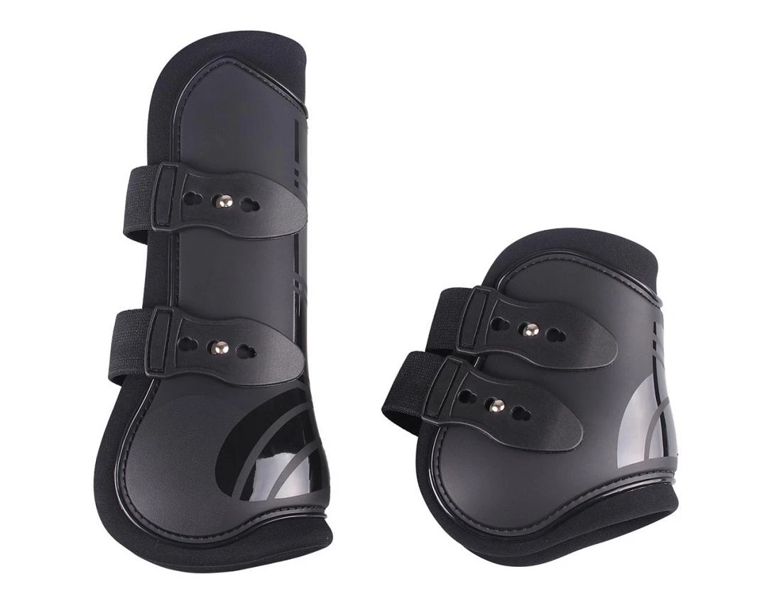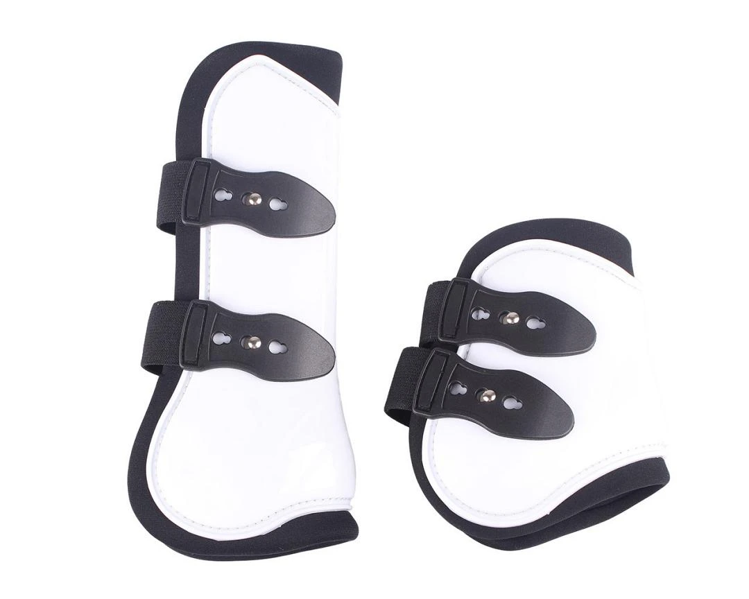 Bescherm de pezen en achterbenen van jouw paard tegen aantikken met deze sportieve peesbeschermerset. De beschermers zijn gemaakt van harde plastic schaal en voorzien van een neopreen voering. De beschermers zijn gemakkelijk te bevestigen met de elastische snelsluitingen.