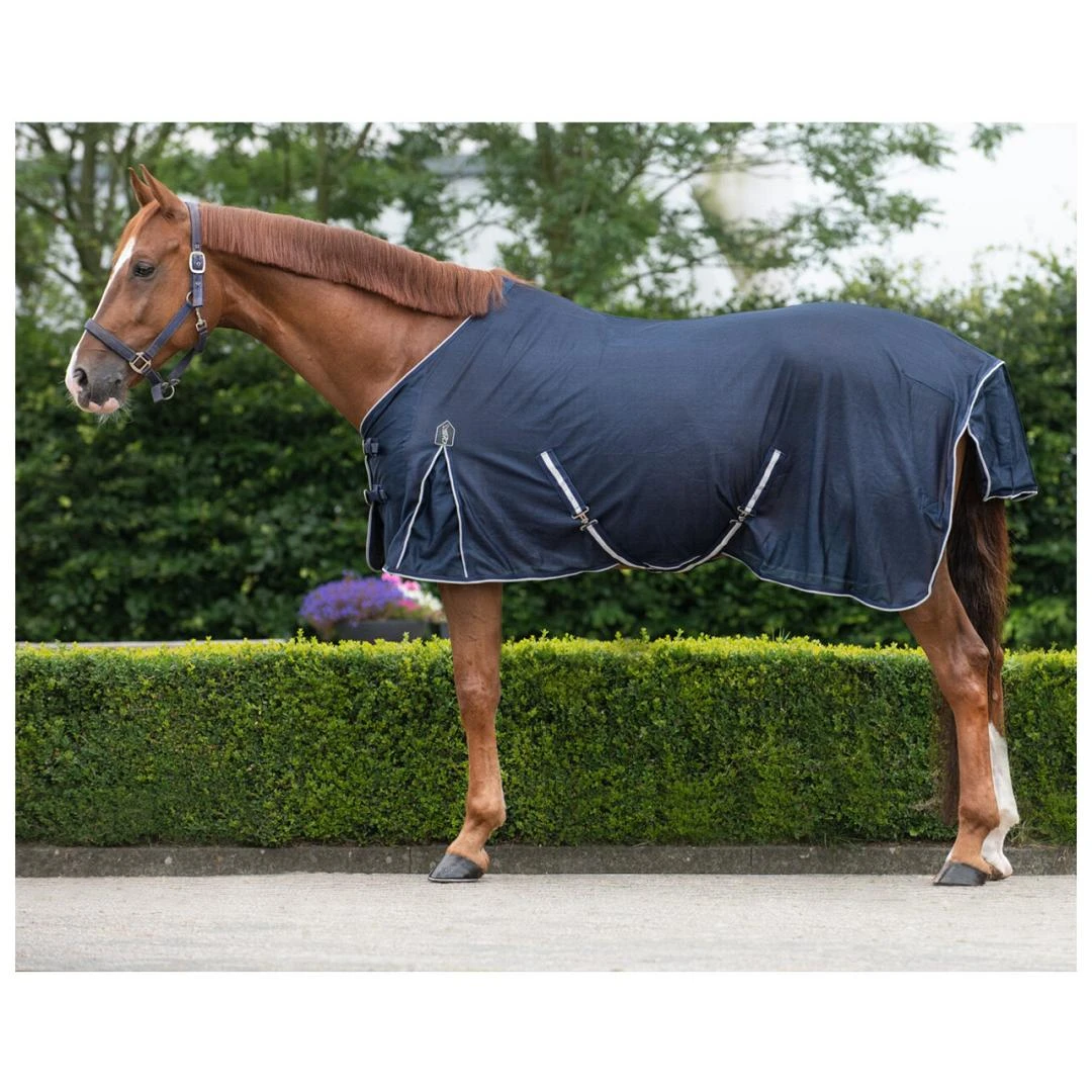 Bescherm je paard tegen vliegen en andere insecten met de QHP Vliegendeken Basic. De vliegendeken heeft een goede pasvorm, is uitgerust met een stevige borstsluiting, kruissingels en een zacht fleece inzetje ter hoogte van de schoft voor extra comfort. De vliegendeken is gemaakt van luchtig mesh.