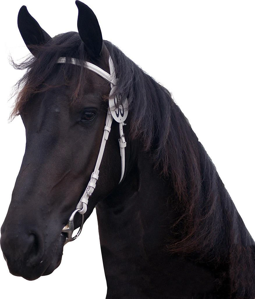 Wit hoofdstel gemaakt van leer. Ideaal voor het voorbrengen van paarden tijdens een keuring. Voorzien van zilverkleurige RVS fournituren.