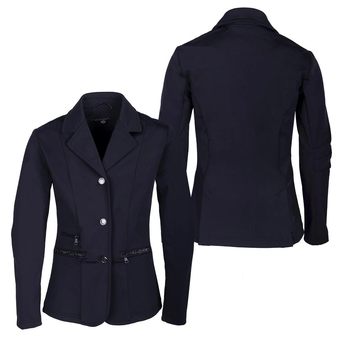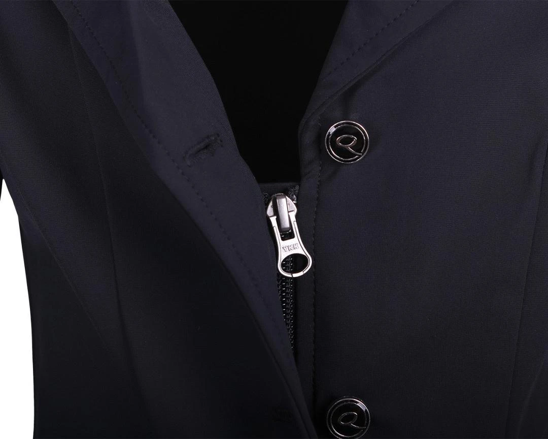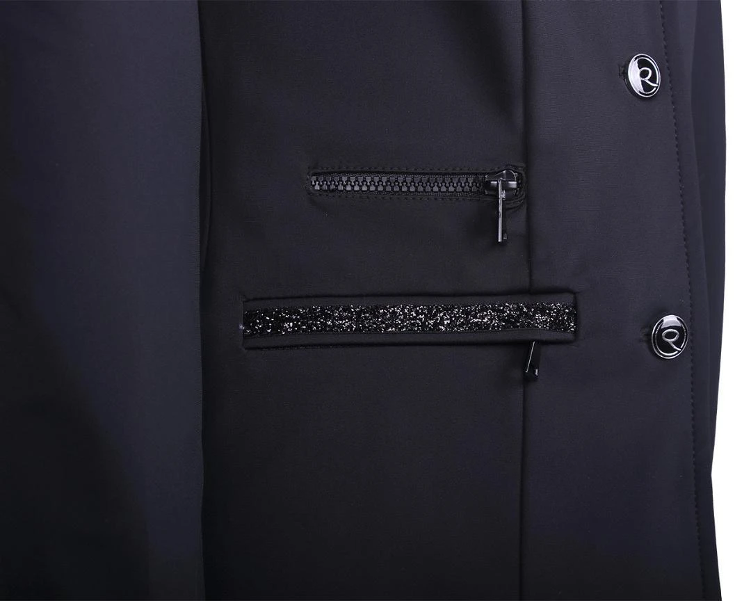 Straal tijdens jouw wedstrijd met dit chique wedstrijdjasje. Het jasje is voorzien van een verborgen ritssluiting achter de knoopsluiting zodat de knopen niet gaan trekken. De stretchende, ademende stof zorgt voor een comfortabele rit en is ook nog eens waterafstotend. De glittertape op de ritszakken en zwart faux ritszakje maken het jasje helemaal af.