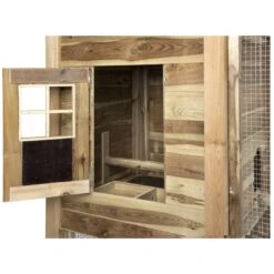 Deze kippenvilla is voorzien van meerdere deurtjes, een looptrap met griplatten en een legnest. Het hok is voorzien van een binnenverblijf. Door middel van een deur is dit verblijf goed te bereiken. Aan het binnenverblijf bevindt zich een legnest. Het dak is te openen waardoor de eieren gemakkelijk te pakken zijn.