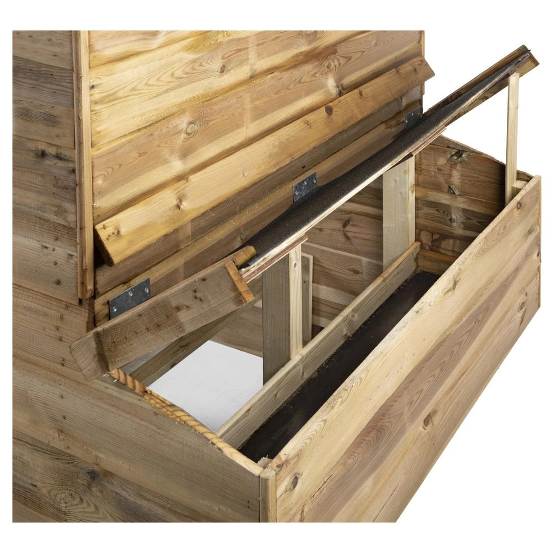 Voldux Kippenhok Toon is gemaakt van geïmpregneerd hout, en is hierdoor onderhoudsvrij. Het verblijf is handgemaakt door gespecialiseerde vakmannen van Voldux. Dit kippenhok heeft een ruim nachthok voorzien van een zitstok en een legnest waardoor je de eieren gemakkelijk kunt pakken.